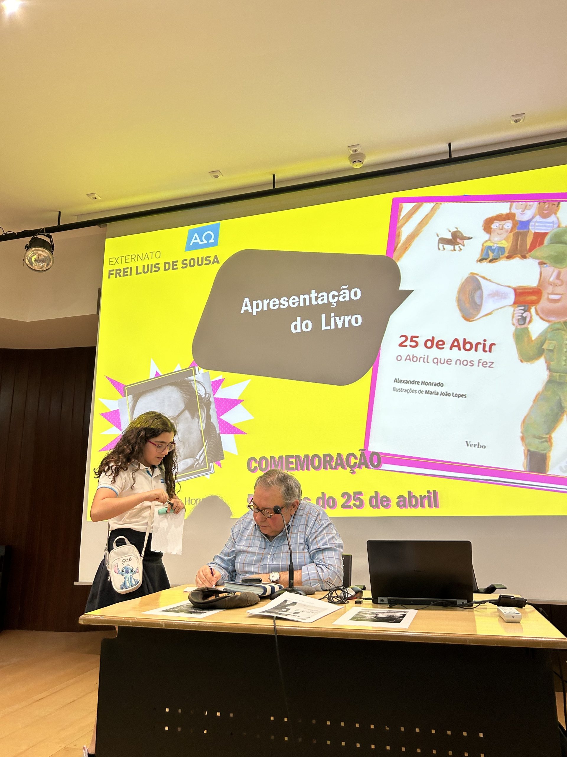 Alexandre Honrado, escritor e jornalista visitou o Externato e partilhou com os alunos do 2ºciclo e 3ºciclo e 12º de Humanidades a sua história e o seu livro. ´´25 de abrir, o abril que nos fez´´. Numa conversa aberta, ouvimos falar do tempo em que a Escola era diferente, as palavras não eram livres e o dia a dia fazia-se com muitos obstáculos. Neste encontro com um homem que dá a vida às palavras, falamos sobre Liberdade e os alunos tiveram oportunidade de questionar e reforçar os seus conhecimentos, sobre uma época tão diferente daquela que vivem.