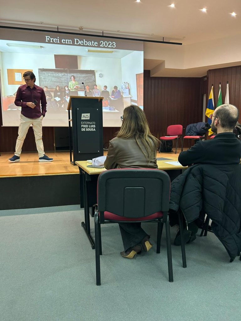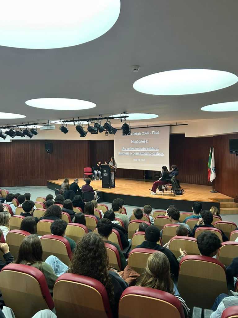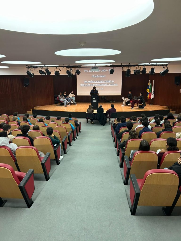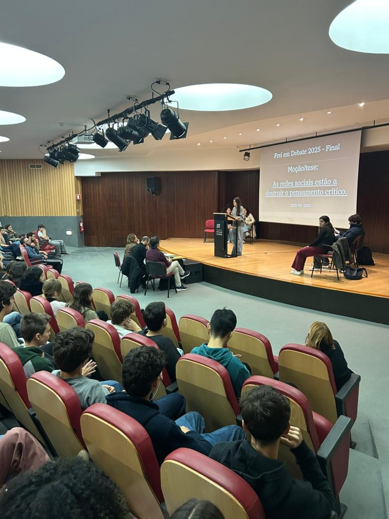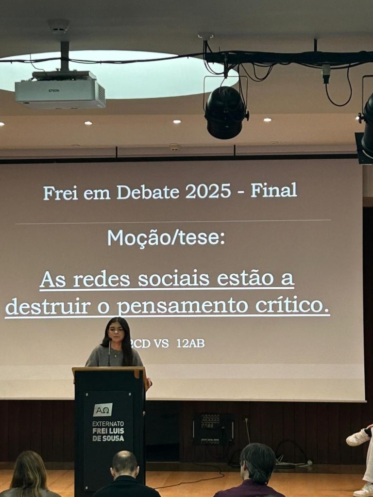 Realizou-se, no dia 17 de novembro, no auditório da nossa escola, a finalíssima de um torneio de debates que se iniciou em janeiro deste ano e que culmina agora entre os representantes dos 12º anos sob o tema seguinte: “As redes sociais estão a destruir o pensamento crítico.” Este evento além de terminar agora um processo interno de debates entre as várias turmas do ensino secundário servirá para apurar quem irá defender e representar o Frei num torneio, a nível nacional, de debates organizado pela AEEP que se realizará no mês de fevereiro de 2026. Mais uma oportunidade de se fazer democracia e desenvolver o espírito crítico na nossa comunidade escolar. Parabéns a todos os intervenientes!